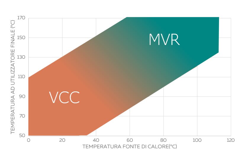 Adatta per raffrescamento e riscaldamento in processi industriali e per reti di teleriscaldamento