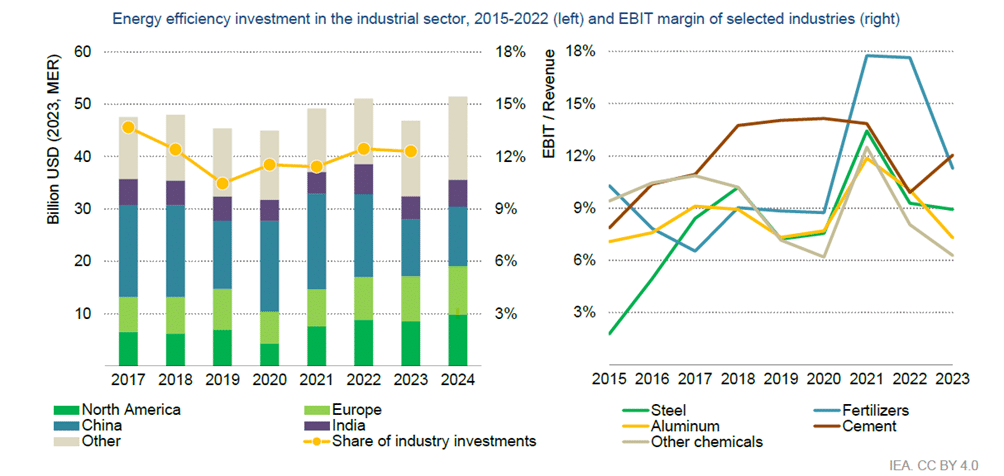 Gli investimenti nell’efficienza energetica e nell’elettrificazione sono rimasti stabili, ma questo risultato è stato raggiunto grazie al dinamismo nel settore dei trasporti, mentre gli investimenti nell’efficienza energetica negli edifici e nell’industria sono diminuiti rispettivamente del 5% e dell’8% nel 2023 rispetto all’anno precedente.