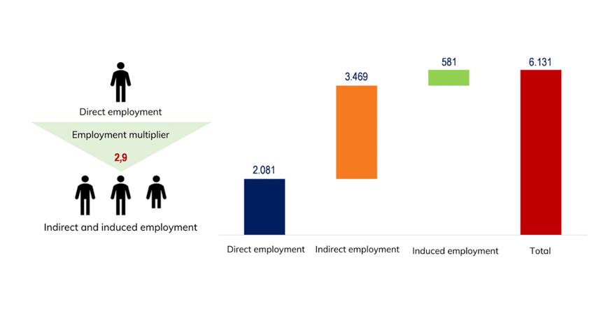 Il grafico seguente illustra il numero di posti di lavoro diretti, indiretti e indotti creati dall’investimento richiesto per 1 GW (in migliaia).