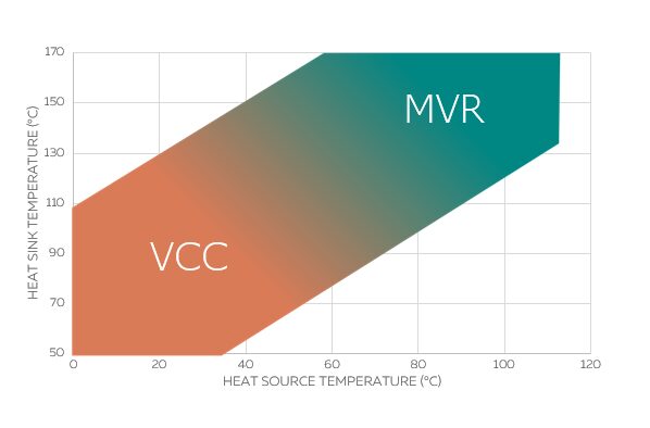 Exergy X-heat industrial heat pump series is available from small- to large-scale applications in the temperature range: